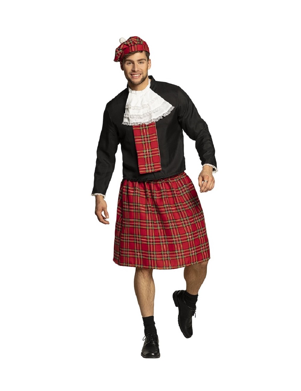 Costum Scotian Mr Scott, pentru barbati, marime unica 58-60, contine: bereta, camasa, jabou și kilt, material 100% poliester.