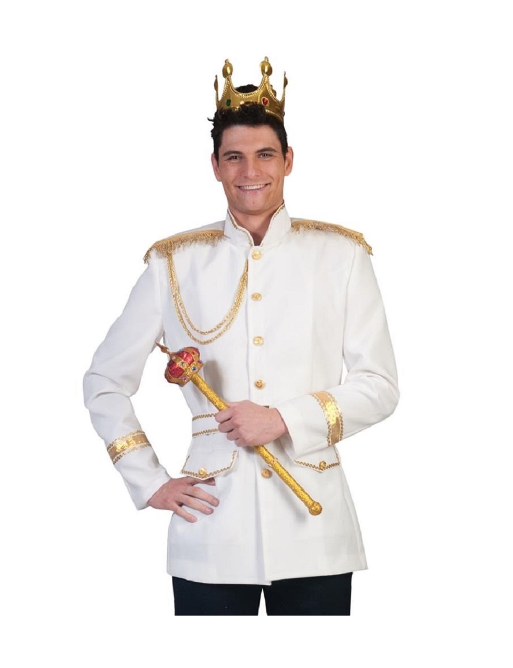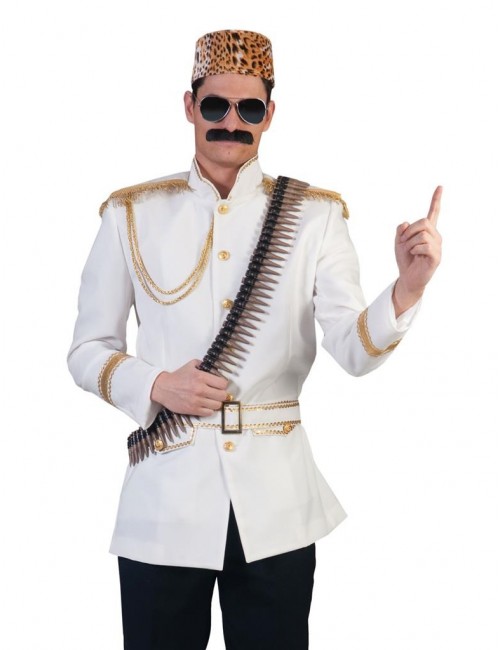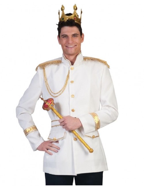 Sacou Print fermecator, pentru barbati, culoare alba, epoleti si garnituri aurii, cu captuseala alba, material 100% poliester, inchidere cu nasturi..