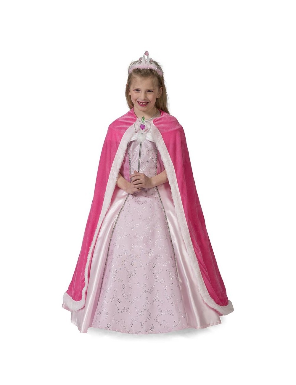 Mantie de Printesa, din catifea roz cu garnitura din blanita sintetica alba, 100% poliester