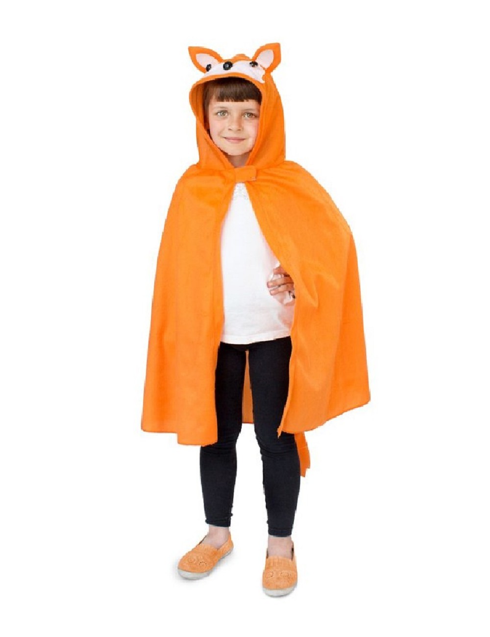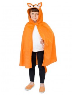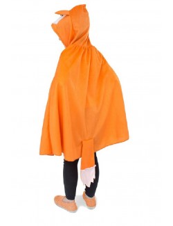 Costum Vulpe, unisex, pentru copii, tip mantie cu gluga, coada atasata, din plus subtire, poliester 100%, culoare portocalie.