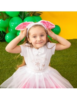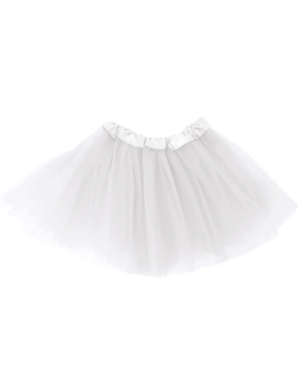 Fusta tutu din tul alb, pentru copii, are elastic si o bentita din satin in talie, 100% poliester, confectionata din 3 metri de material in trei straturi.