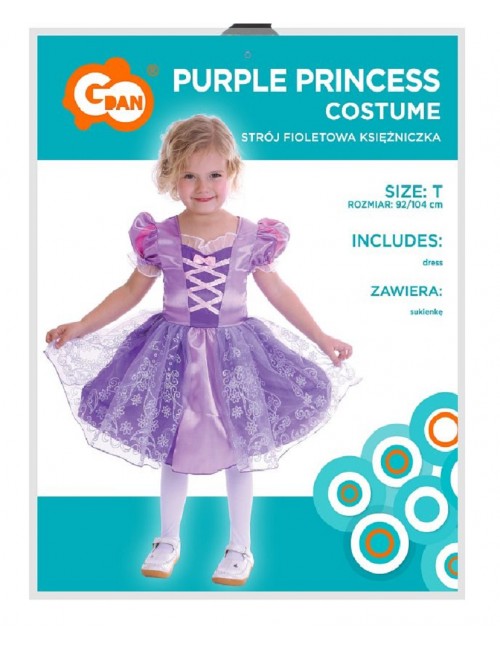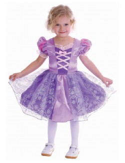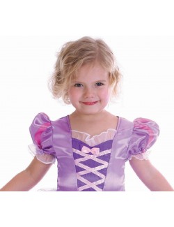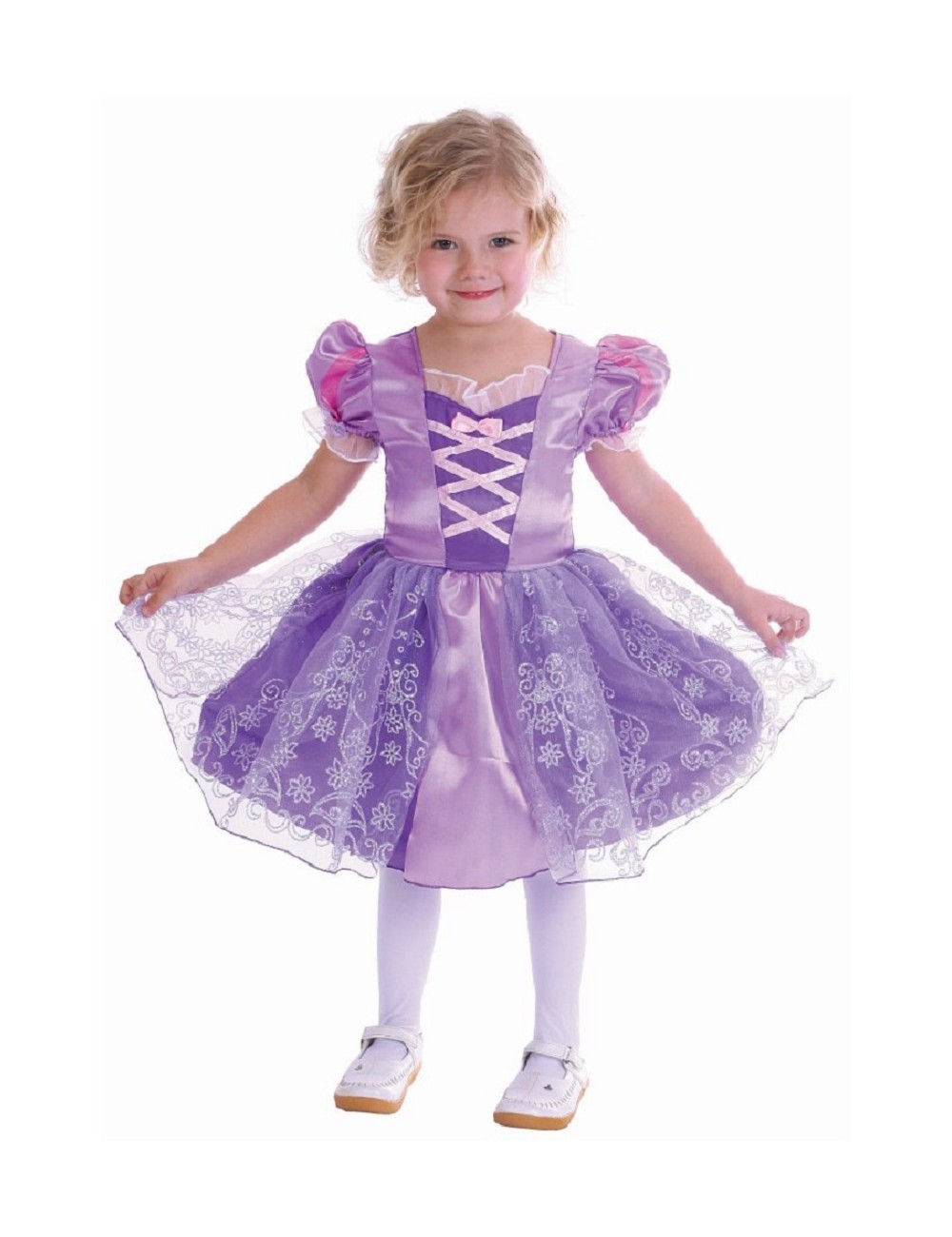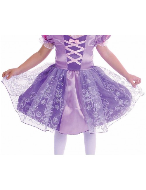 Rochie mov Printesa, Purple Princess, confectionata din satin si tul, spatele topului din lycra, maneci bufante, material 100% poliester, inspirata de rochita indragitului personaj Disney - Tangled Rapunzel