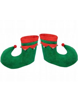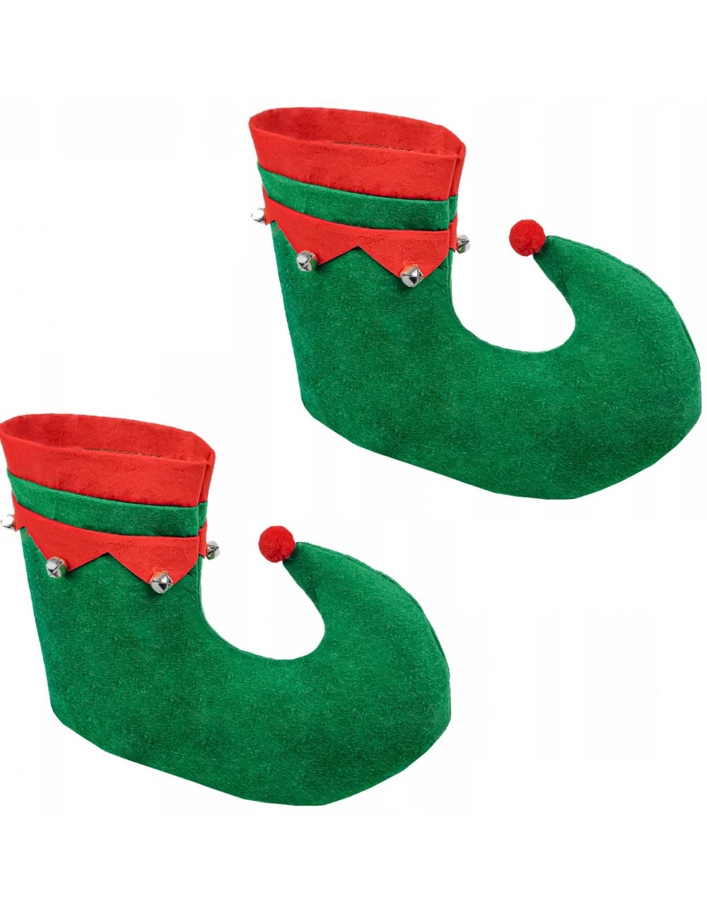 Botosi Elf, verzi cu clopotei, garnitura rosie, din pasla, marime universala, potriviti pentru completarea costumului de Elf sau Spiridus.