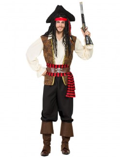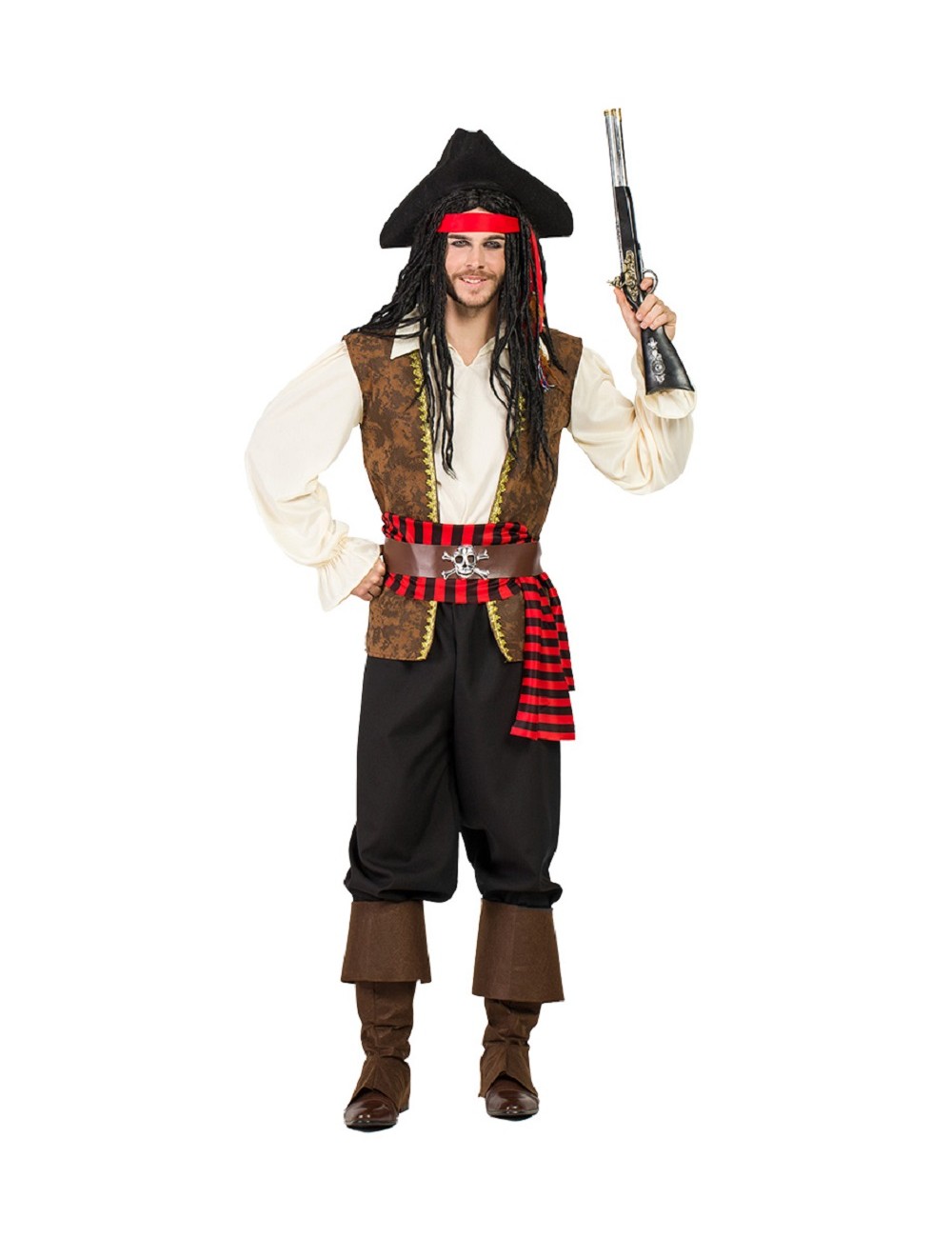 Costum adolescenti, Pirat Jones, pentru 14-16 ani, include o pălărie, bandană, cămașă, vestă, eșarfă, curea, pantaloni și huse pentru pantofi, 100% poliester.