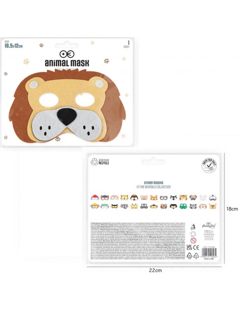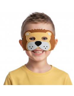 Masca de Leu, dimensiuni 18 x 12 cm, accesoriu pentru serbari sau carnaval, prindere cu elastic, material: fetru.