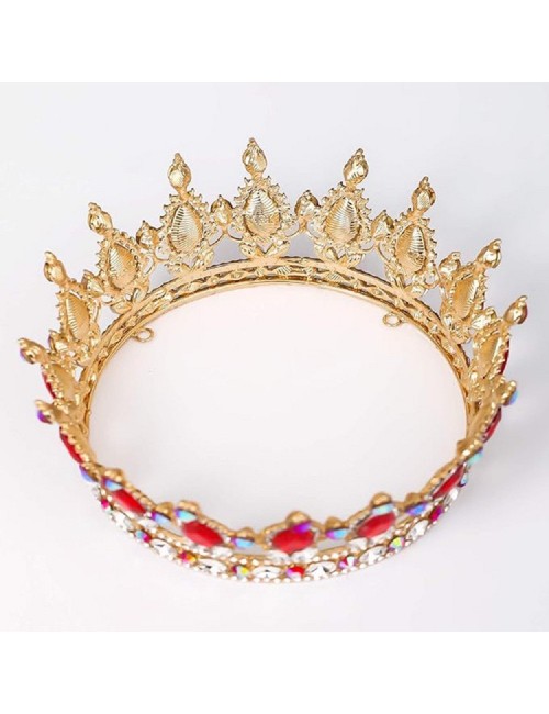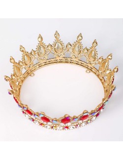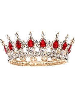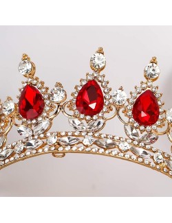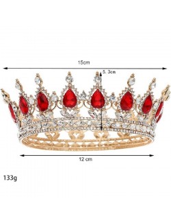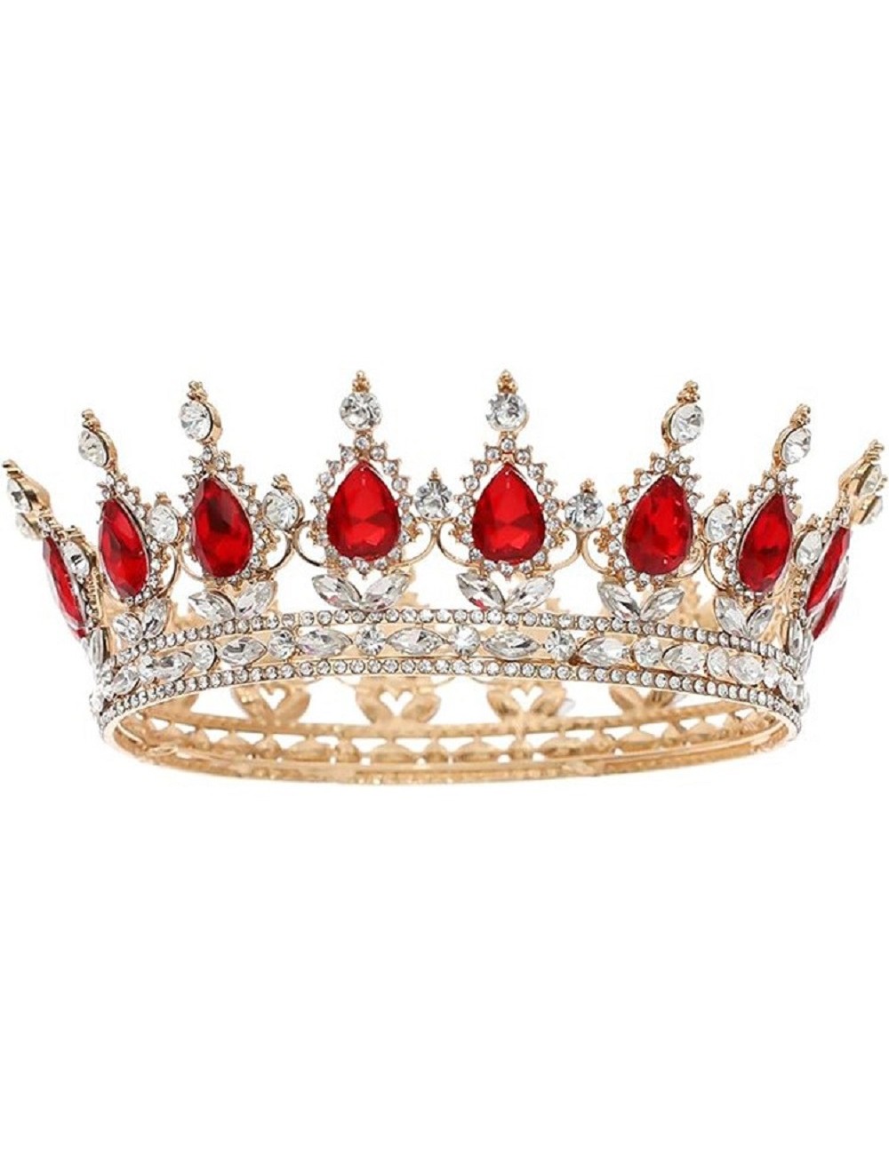Coronita aurie, cu Strasuri si Pietre rosii, din aliaj rezistent, un accesoriu deosebit pentru completarea coafurilor sau decoratiune la nunți, aniversări sau petreceri
