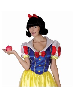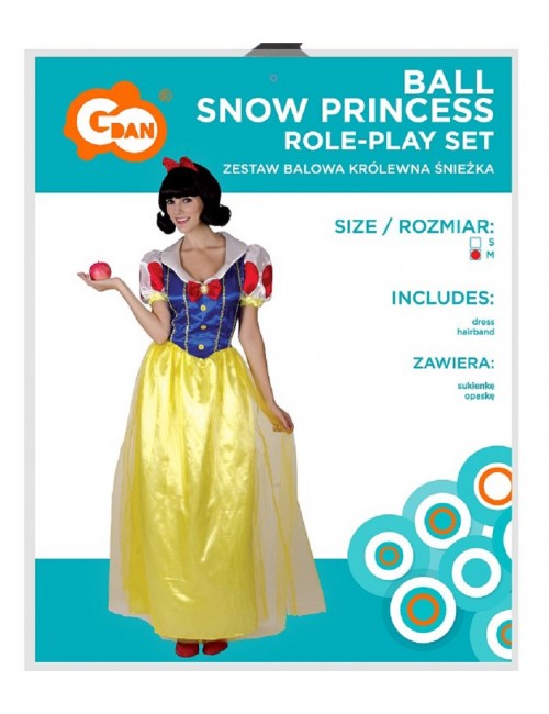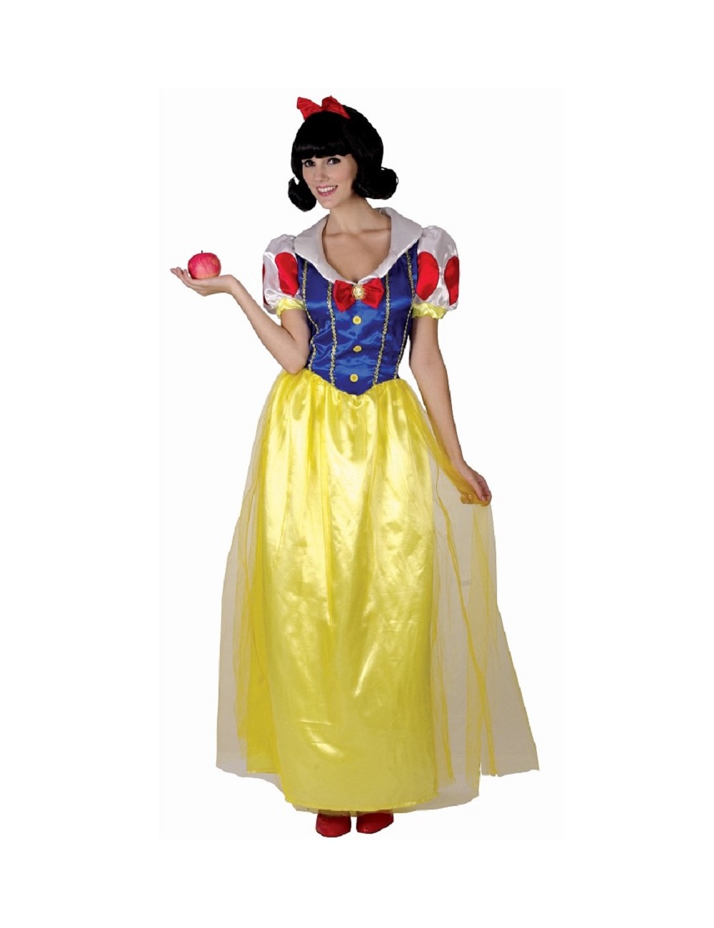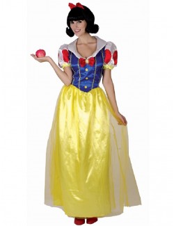 Costum femei, Alba ca zapada, contine: Rochie lunga si bentita cu fundita rosie, confectionate din satin si lycra, 100% poliester.