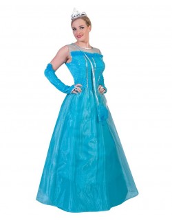 Costum Printesa, bleu, pentru femei, marimi 40/42, 44/46, 48/50, 52/54, contine Rochie lunga, Manusi fara degete si Gentuta, inspirata de rochia Printesei Cenusareasa.