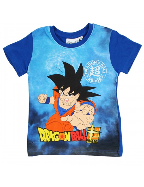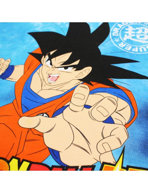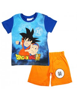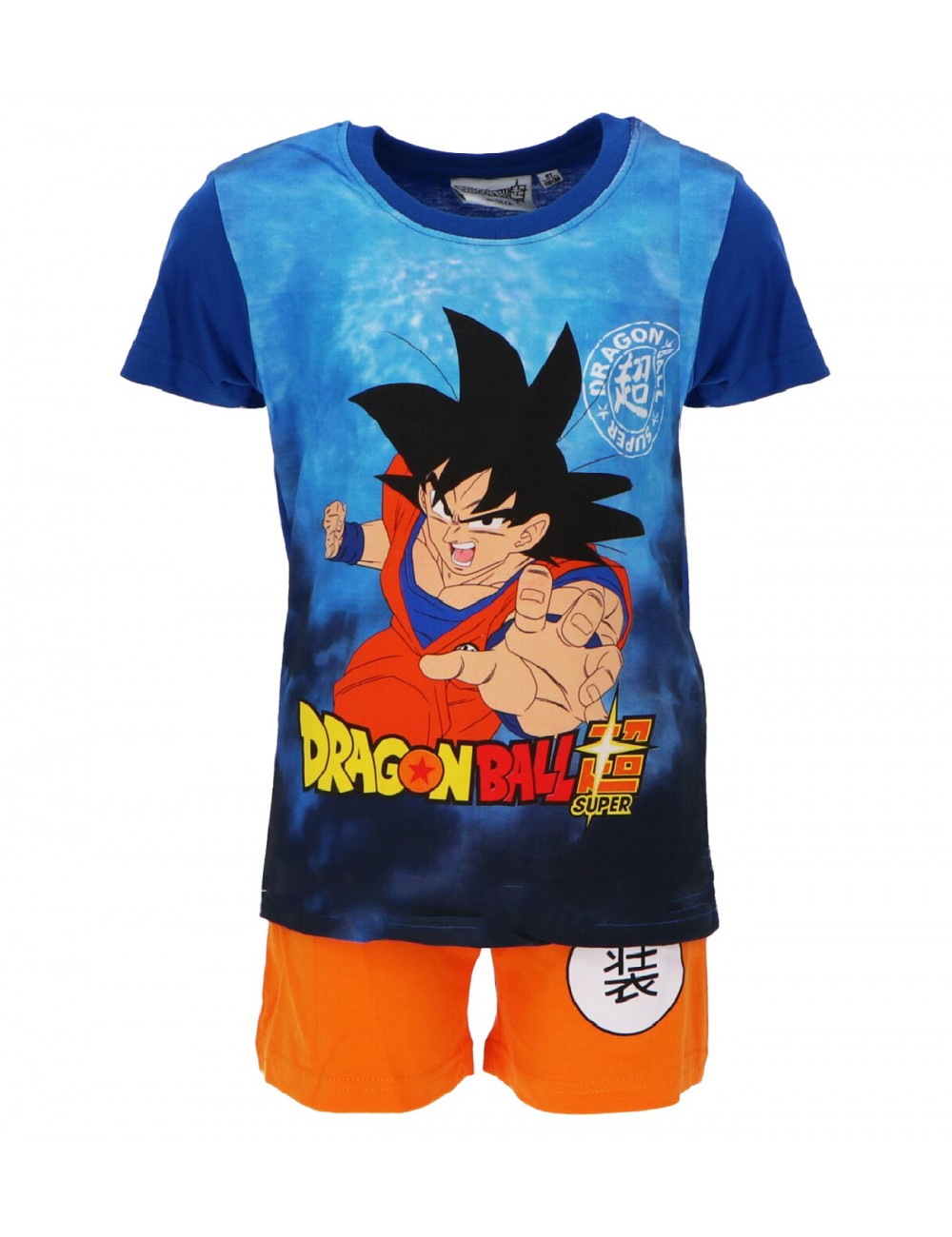 Tricou si pantaloni scurti Dragon Ball, pentru copii de 4-10 ani, 100% bumbac, culori albastru-portocaliu, imprimeu Super Goku.