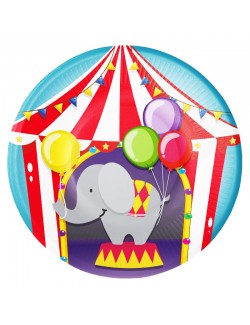 Set 8 farfurii Petrecere la Circ, diametru 23 cm. de unica folosinta, fabricate din carton, perfecte pentru petreceri de copii.