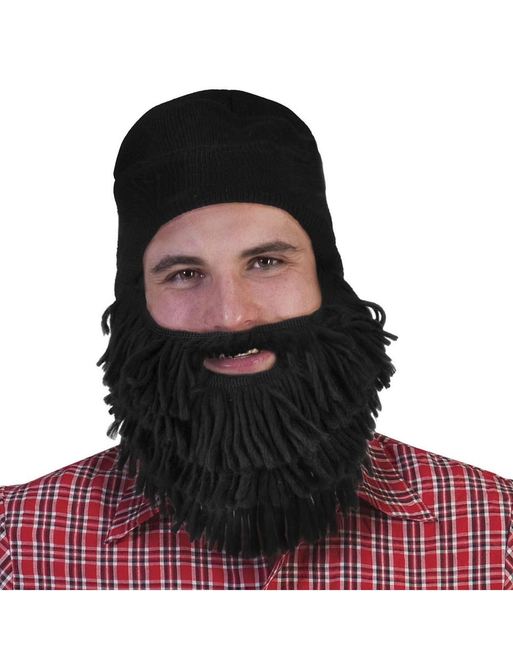 Caciula tricotata cu barba atasata, pentru adulti, din fir acrilic 100%, culoare neagra, marime unica.