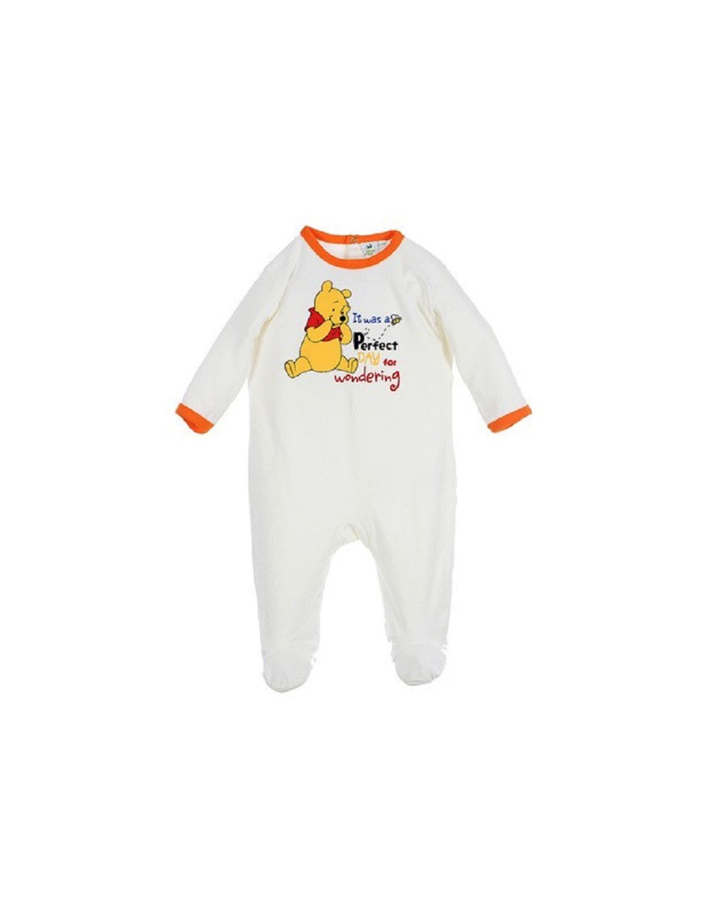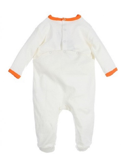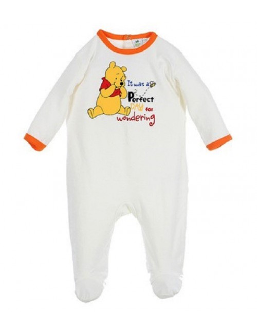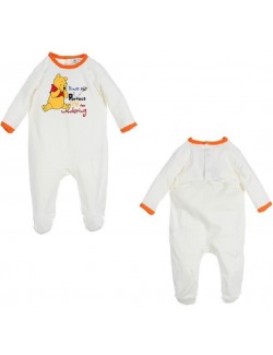 Salopeta Ursulet Winnie, crem, maneca lunga, confectionata din tricot indesirabil (Interlock) bumbac 100%, se incheie la spate cu o serie de capse dispuse atat orizontal cat si vertical.