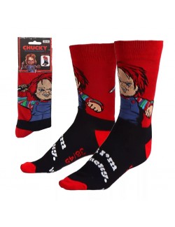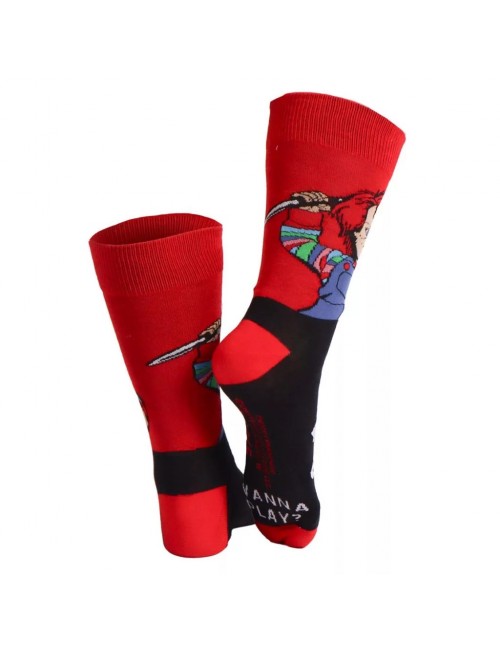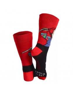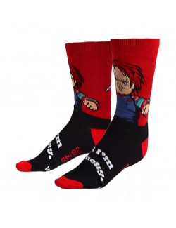 Sosete lungi, unisex, Chucky Hi, pentru adulti, marime unica 38-45, culori rosu-negru, material de calitate: 86% bumbac, 12% poliamida si 2% elastan.