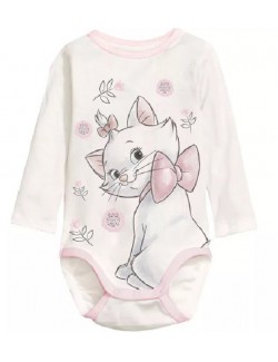 Body Marie - Pisicuta aristocrata, bebelusi 74-80 cm, maneca lunga, bumbac 100%, inchidere cu 3 capse intre picioruse, culoare alba, garnitura roz.