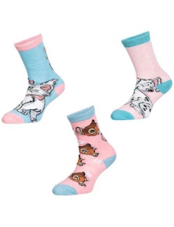 Set 3 perechi sosete Disney pentru copii, marimi 23-34, culori diferite, imprimate cu Marie- Pisicuta aristocrata, Bambi si 101 Dalmatieni.