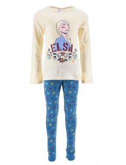 Pijama Frozen Elsa, crem-albastru, pentru fete de 4-8 ani, contine bluza crem, cu maneca lunga si pantaloni lungi, culoare albastra, compzitie material - 100% bumbac.