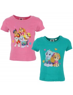 Set 2 tricouri Paw Patrol Skye si Everest, pentru fete, maneca scurta, bumbac 100%, culoare roz si verde, imprimeu frontal.