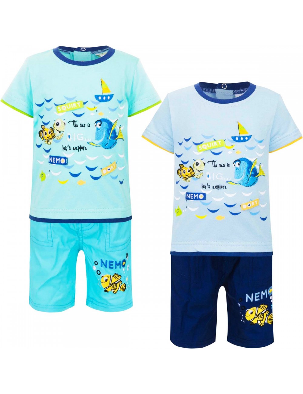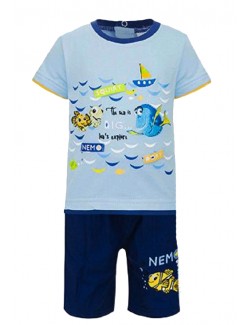 Set haine Pestisorul Nemo, pentru bebelusi, contine tricou si pantaloni scurti, material de calitate, 100% bumbac, tricou prevazut cu 3 capse la spate, 2 variante de culoare: bleu-turcoaz sau albastru-bleumarin.