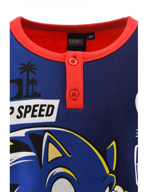 Pijama Sonic, rosie, bumbac interlock, pentru copii, alcatuita dintr-o bluza cu maneca lunga si pantaloni lungi, material usor flausat la interior, 100% bumbac, densitate 170 gr/mp, ambalata intr-o cutie speciala.
