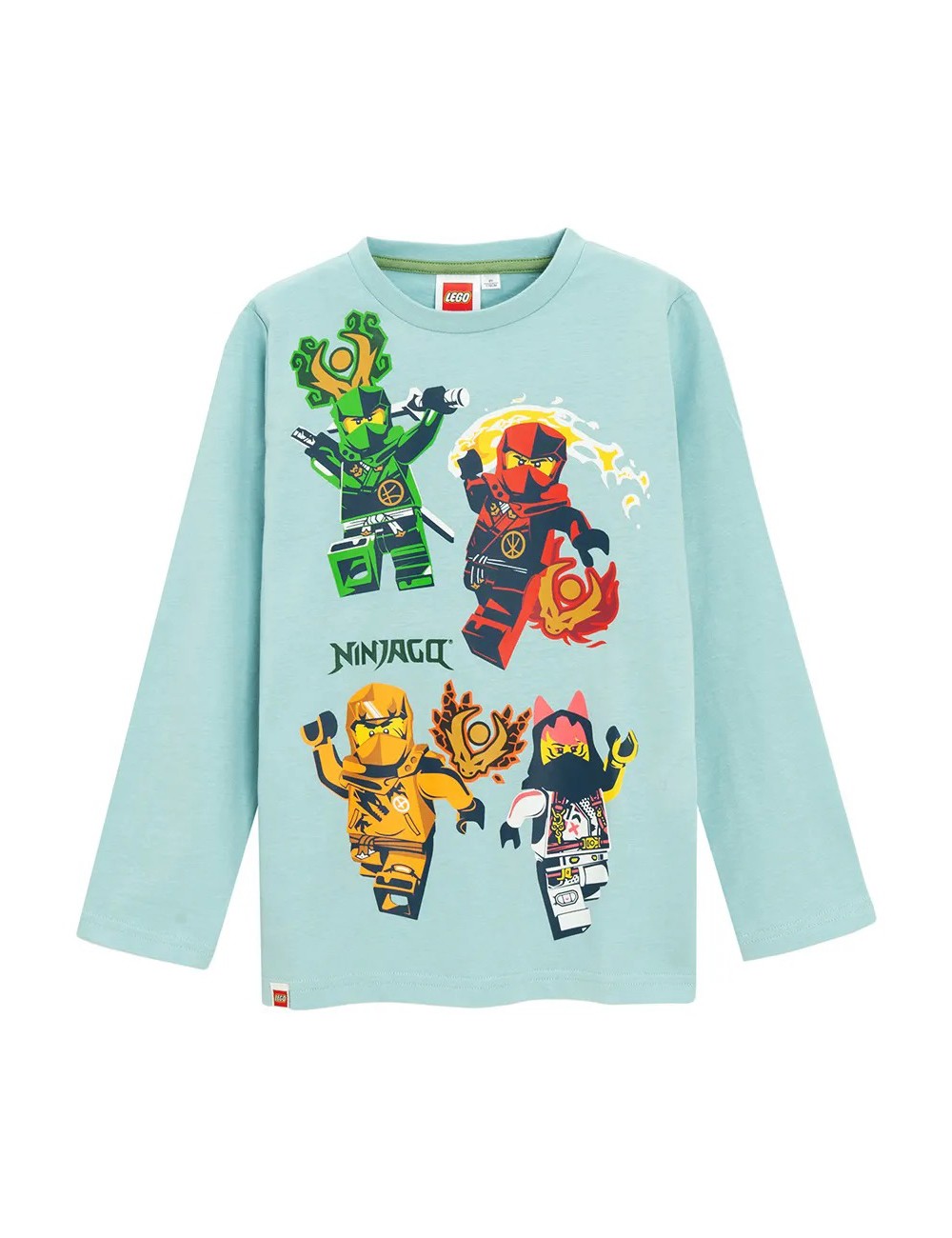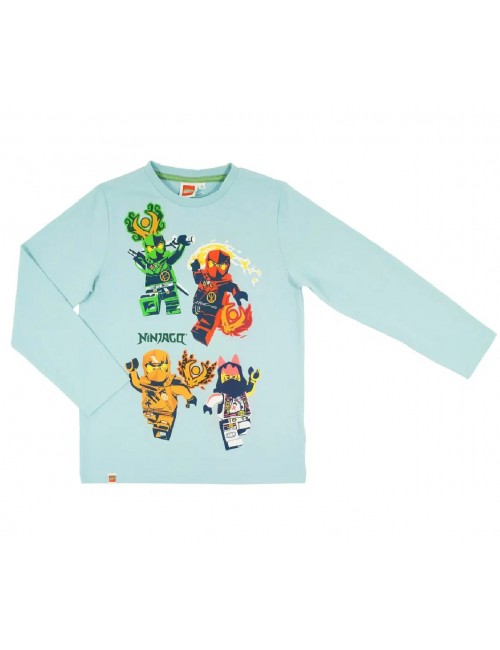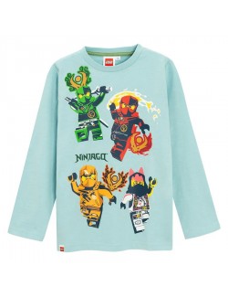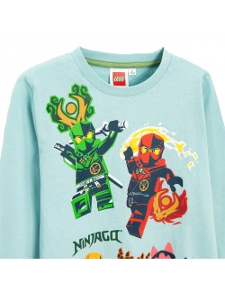 Bluza Lego Ninjago, culoare bleu, material de calitate, 100% bumbac, guler rotund si imprimeu multicolor cu eroii Lego Ninjago.