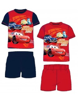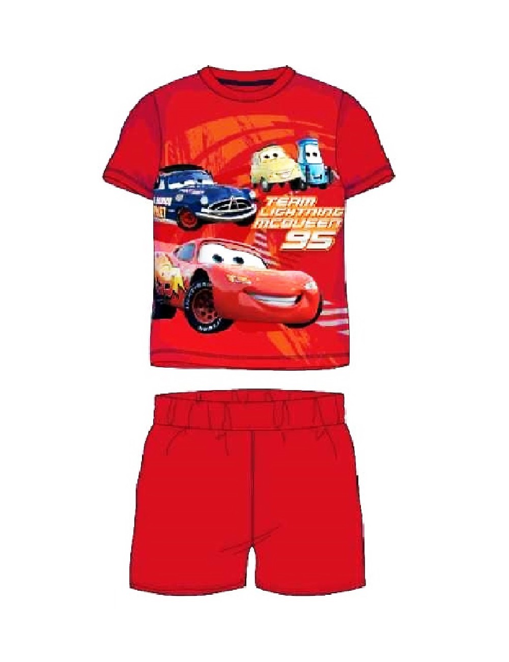Pijama rosie, Disney Cars Team Fulger McQueen, pentru copii de 2-6 ani, contine un din tricou cu imprimeu frontal si pantaloni scurti, 100% bumbac.