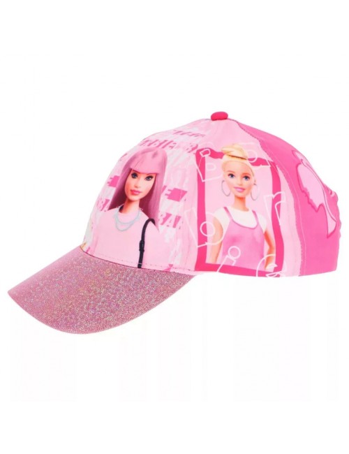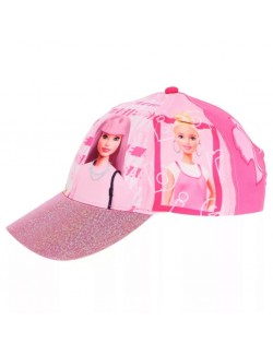 Sapca Barbie pentru copii, marime 54 cm, culoare roz, se regleaza cu banda de scai la spate, material 100% poliester.