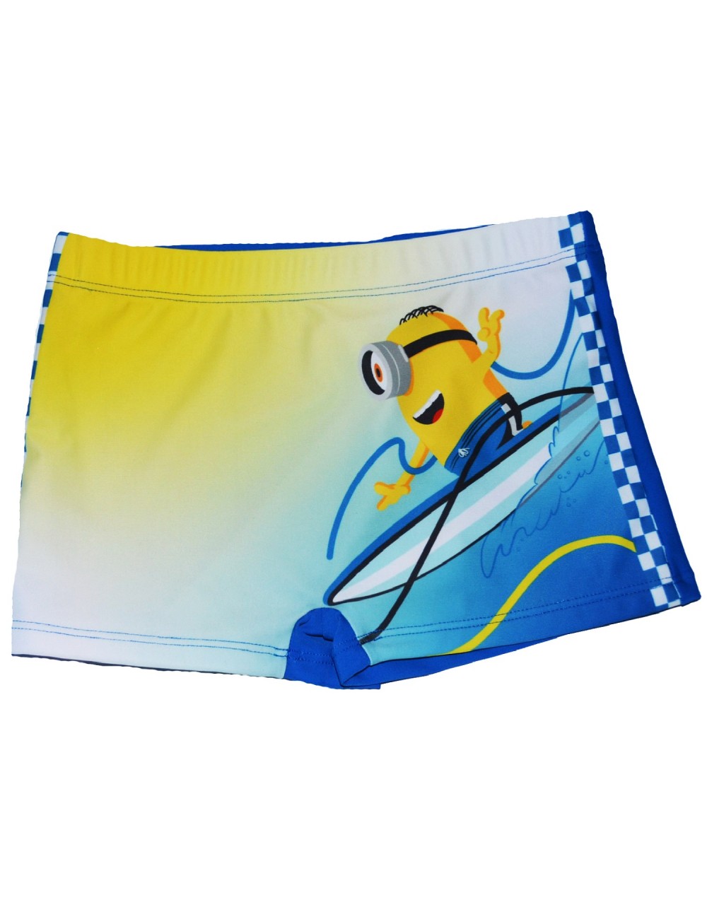 Slip boxeri Minions, pentru baieti 3-8 ani, croiala simpla si practica, fata cu imprimeu multicolor, spatele albastru.