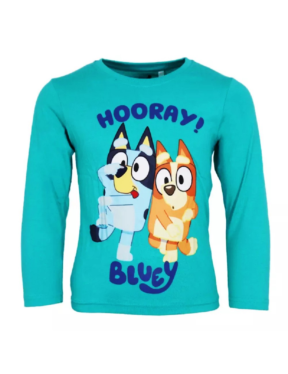 Bluza Bluey Hooray!, culoare turcoaz, pentru copii, maneca lunga, material de calitate, 100% bumbac.