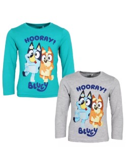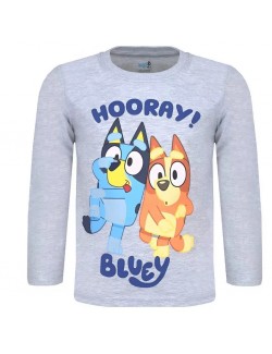 Bluza Bluey si Bingo Hooray!, culoare gri, pentru copii, maneca lunga, material de calitate, 98% bumbac, 2% vascoza.