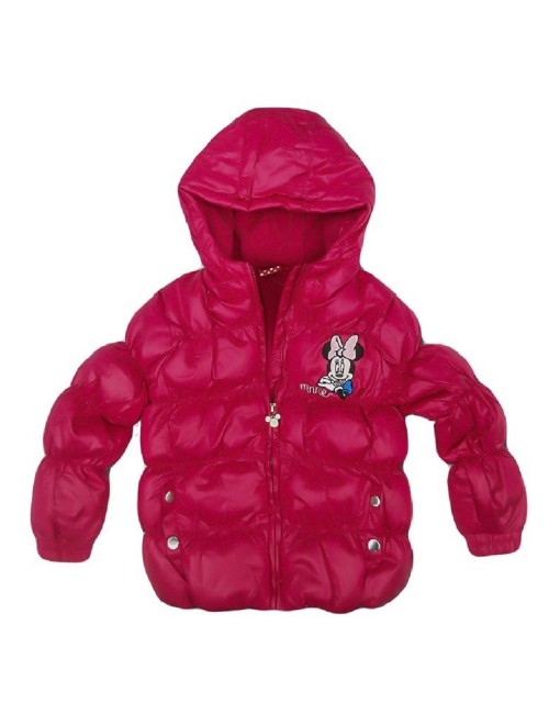 Jacheta groasa, cu gluga, captusita cu material calduros, tip polar. Se inchide cu fermoar, are doua buzunare laterale inchise cu capse si un imprimeu brodat pe piept cu Minnie Mouse. Culoare: fucsia.