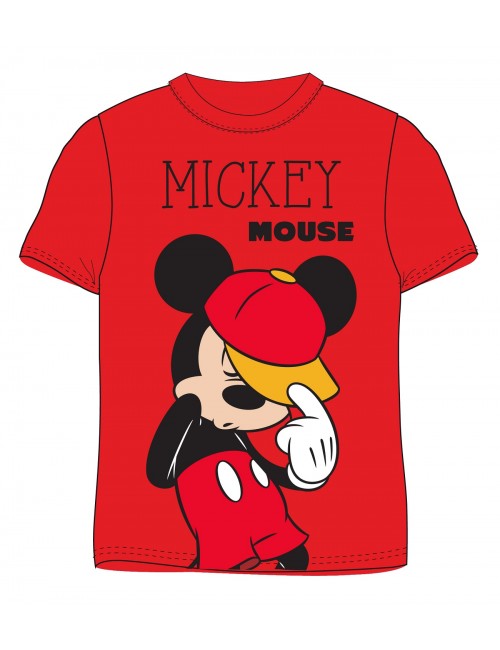 Tricou Mickey Mouse, culoare rosie, copii 4-6 ani, 100% bumbac, 160 gr/mp.