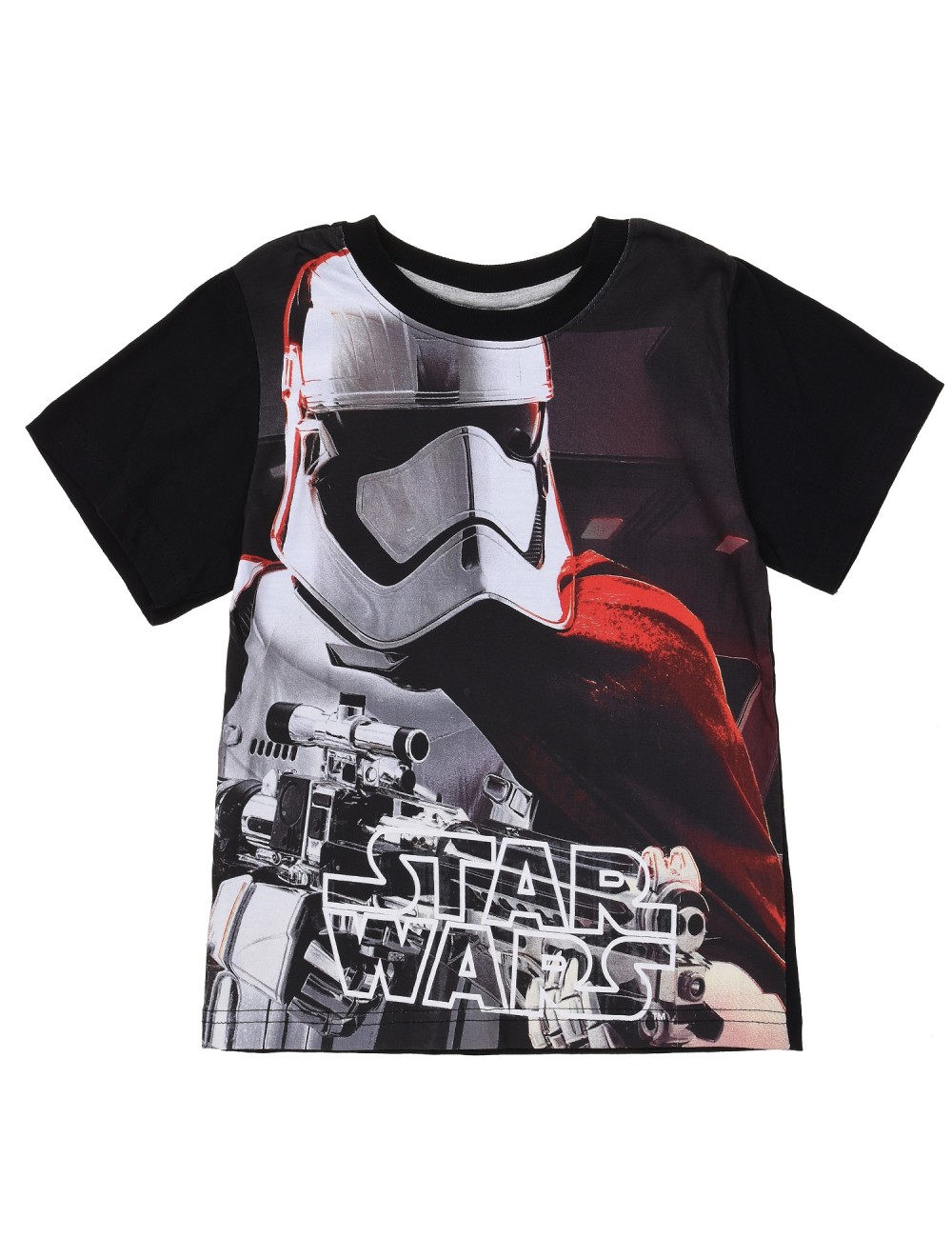 Tricou Star Wars Stormtrooper, negru, 110-122 cm, maneca scurta, 100% bumbac, spatele si manecile negre, fata cu imprimeu multicolor.