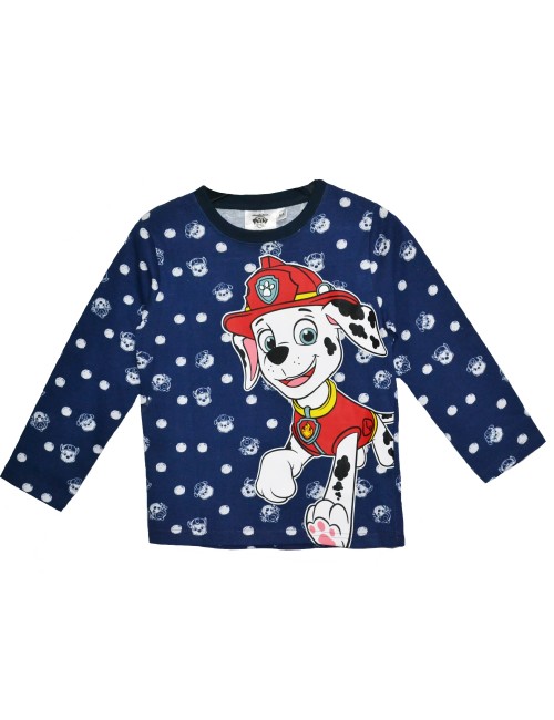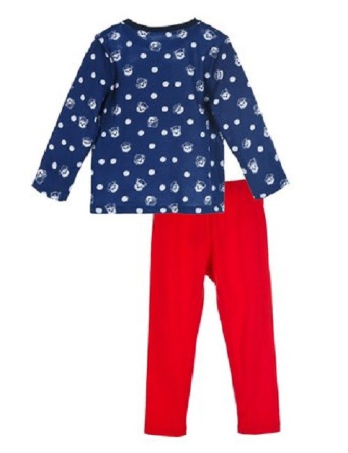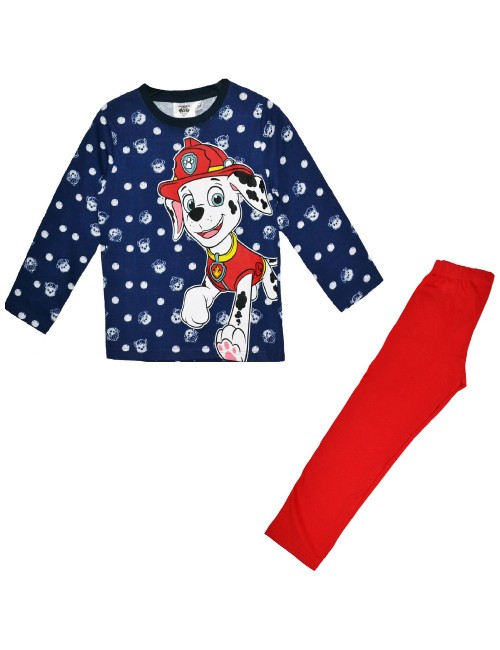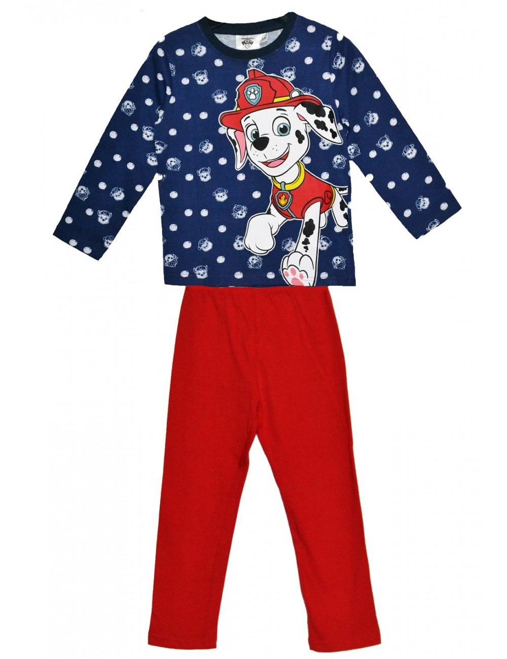 Pijama Marshall Paw patrol, pentru copii 3-5 ani, alcatuita din bluza cu maneca lunga, bleumarin si pantaloni lungi, rosii, 100% bumbac.