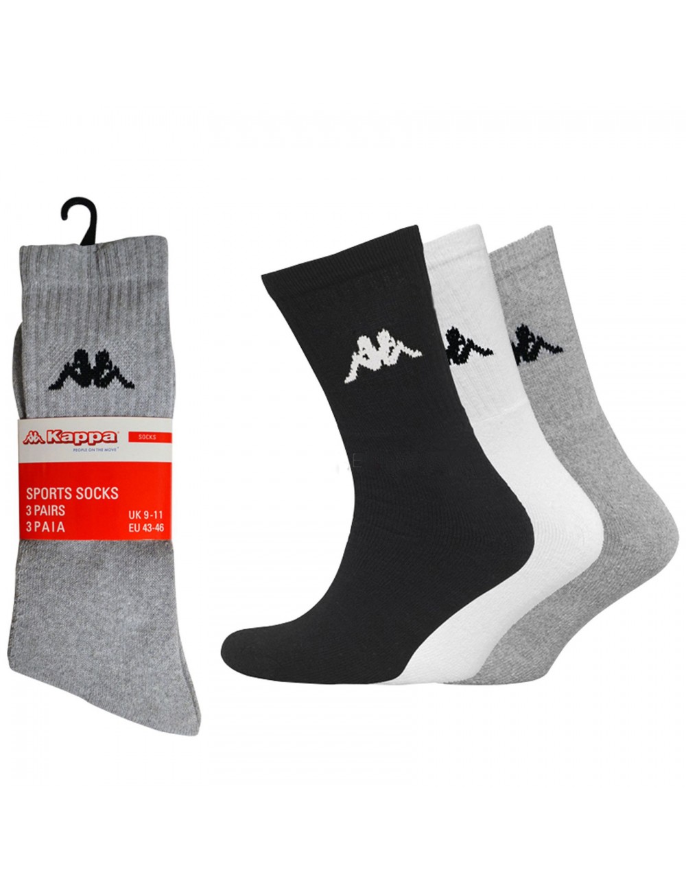 Set 3 perechi Sosete Kappa pentru barbati, marimi 43/46, culori asortate alb, gri si negru.