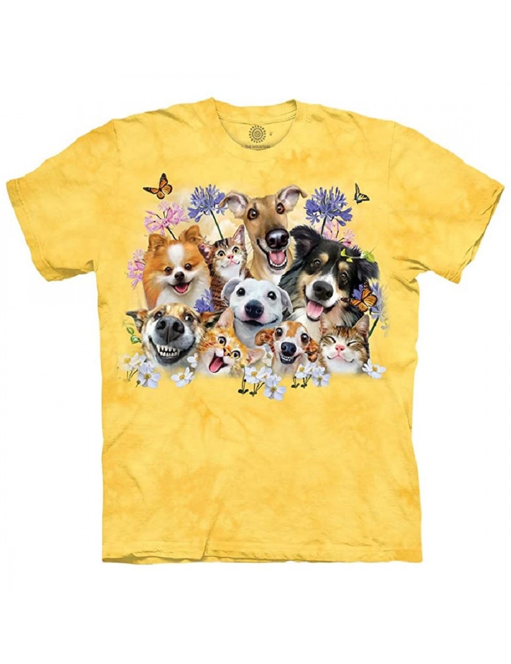 Tricou unisex Mountain, Dogs Fun in the sun, 100% bumbac, galben, cu o grafica realista si amuzanta de Howard Robinson, realizat cu cerneluri ecologice pe baza de apa.