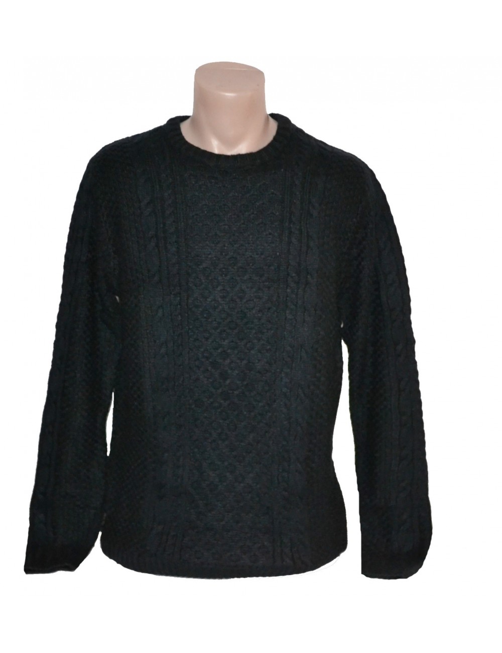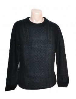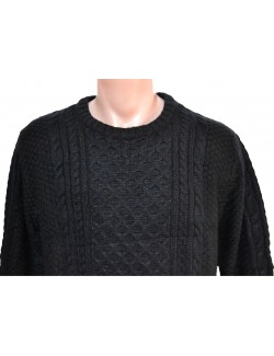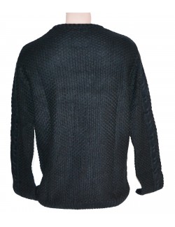 Pulover negru pentru barbati, C&A, marimi L - XXL, tricotat din fir acrilic 100%, guler dublat, la baza gatului si model impletit pe piept si maneci.