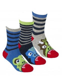Set 3 perechi sosete dungi, Dinozauri, Cotton Rich, culori diferite, marimi 23/26, 27/30, 31/36.