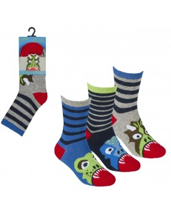 Set 3 perechi sosete Animale, Cotton Rich, 23-36, multicolore, marimi 23/26, 27/30, 31/36, imprimeu Tigru, Crocodil si Dinozaur.