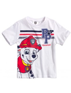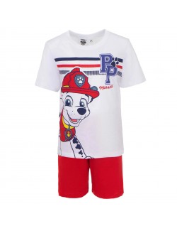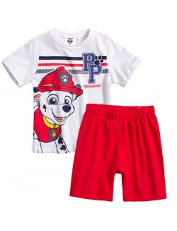 Pijama vara, Paw Patrol Marshall, 3-6 ani, alb-rosu, alcatuita din tricou alb, cu maneca scurta si pantaloni scurti, culoare rosie. Material de calitate, 100% bumbac.