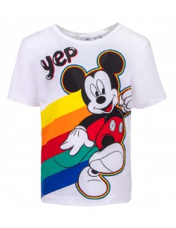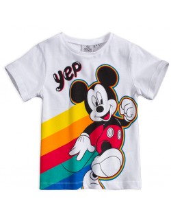 Tricou alb, Mickey Mouse Yep!, pentru copii 3-8 ani, 100% bumbac, imprimeu multicolor..