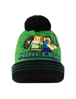 Caciula cu mot, Minecraft Steve & Alex, 54-56 cm, exterior din polar fleece (100% poliester), interior din fir acrilic 100%, potrivita pentru toamna-iarna.