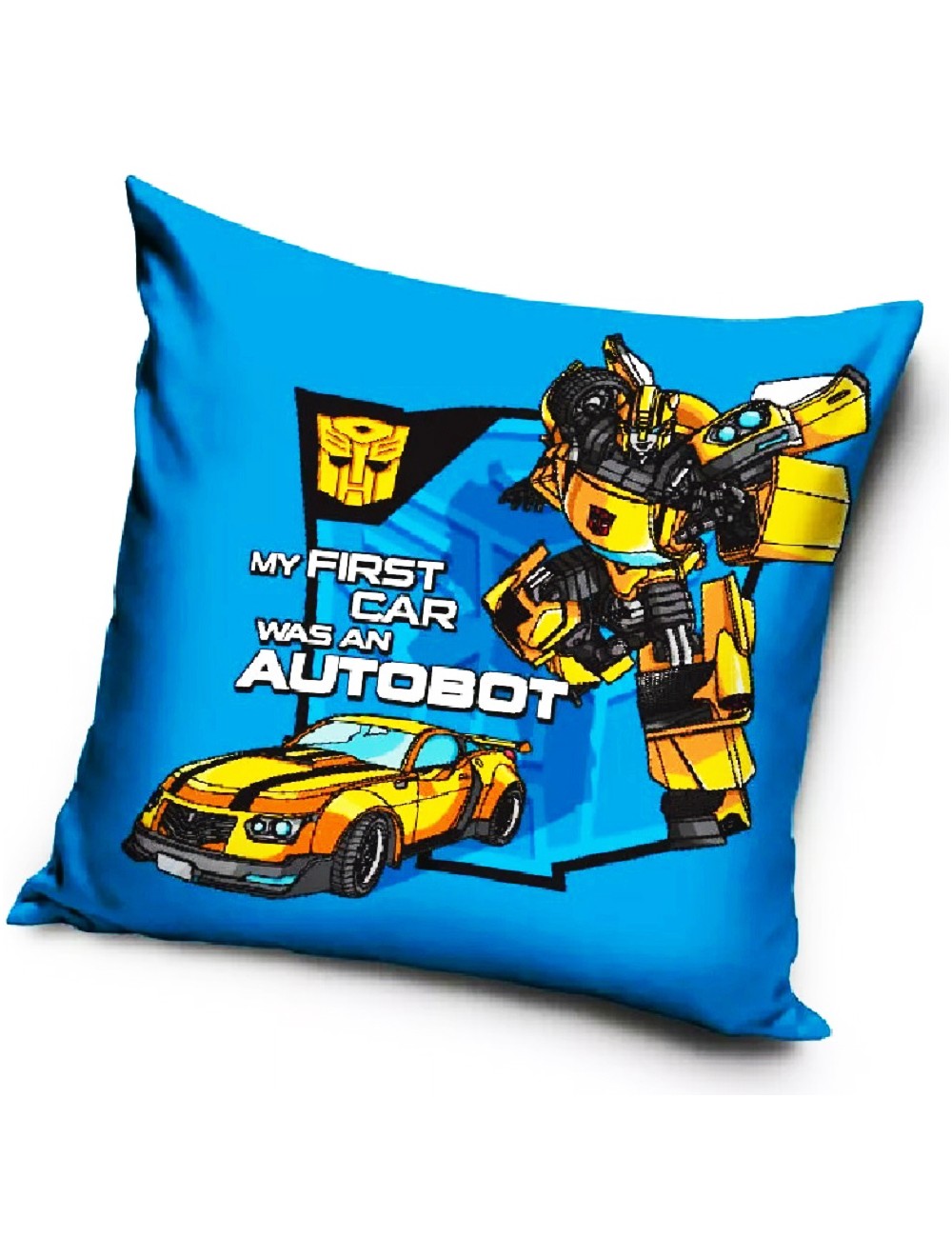 Fata de perna Transformers Bumblebee, din velur, dimensiuni 40 x 40 cm, multicolora, poliester 100%, imprimeu identic pe cele 2 parti, inchidere cu fermoar.