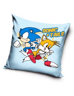 Perna decor, Sonic 40 x 40 cm, pentru copii. Este confectionata din microfibra, cu umplutara din vatelina, poliester 100%, imprimeu diferit pe cele 2 fete.