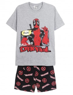 Pijama Marvel Deadpool pentru barbati, compusa din doua piese: tricou cu maneca scurta (98% bumbac, 2% poliester) si pantaloni scurti, 100% bumbac, foarte confortabila.