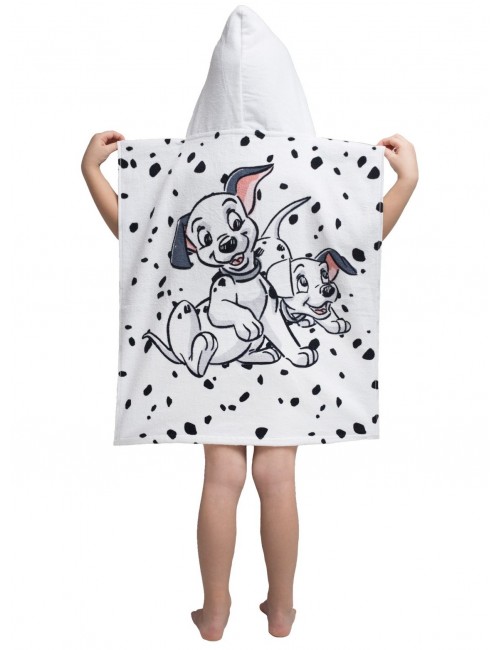 Prosop poncho Disney 101 Dalmatieni, cu gluga, bumbac 100%, lungime (extins) 100 cm, latime 55 cm, imprimeu diferit fata-verso, culori alb-negru.