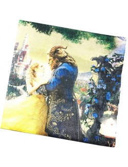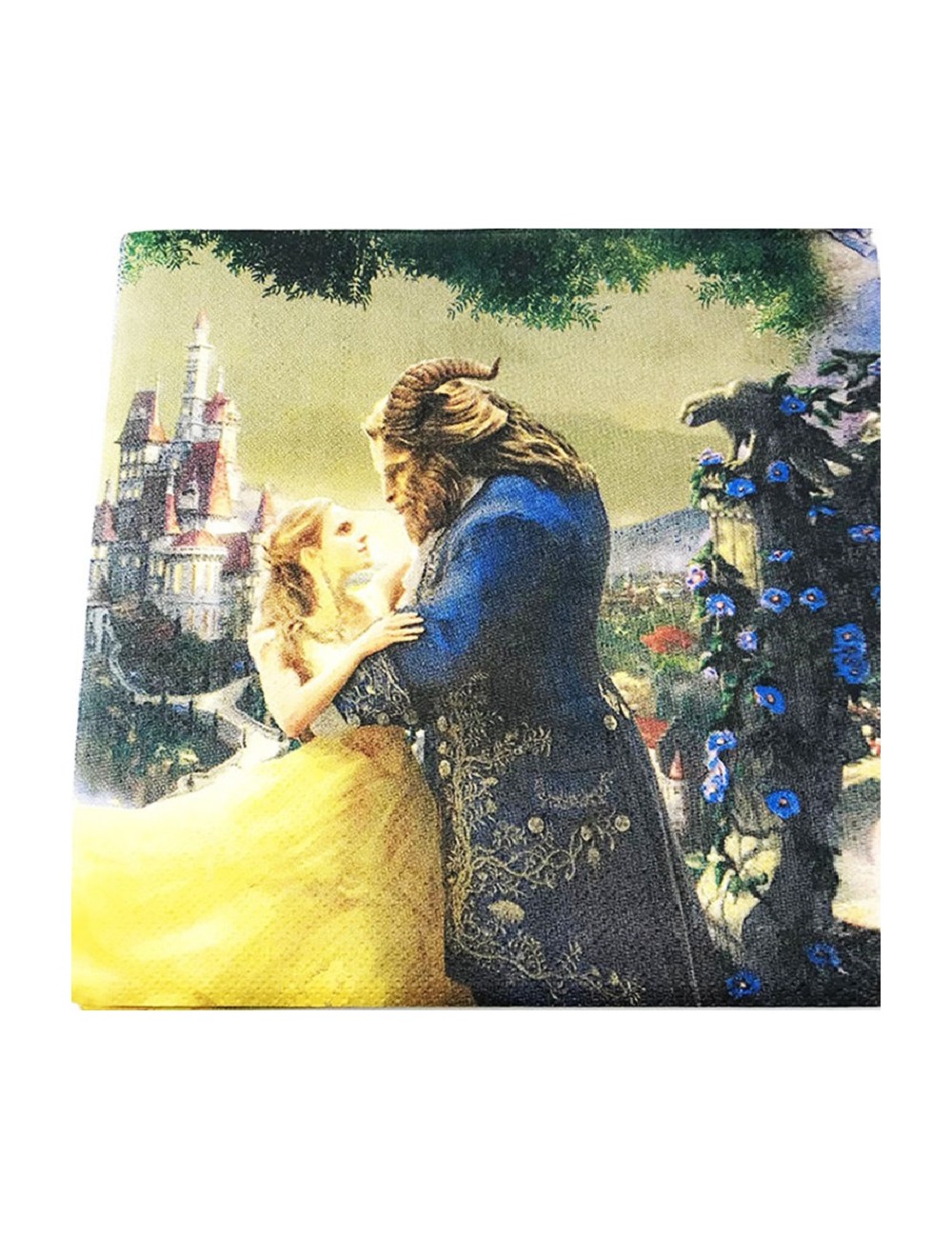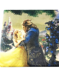 Set 12 servetele, Frumoasa Belle si Bestia, dimensiuni 33 x 33 cm (extins), doua straturi de hartie fina, imprimeu multicolor.