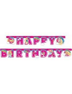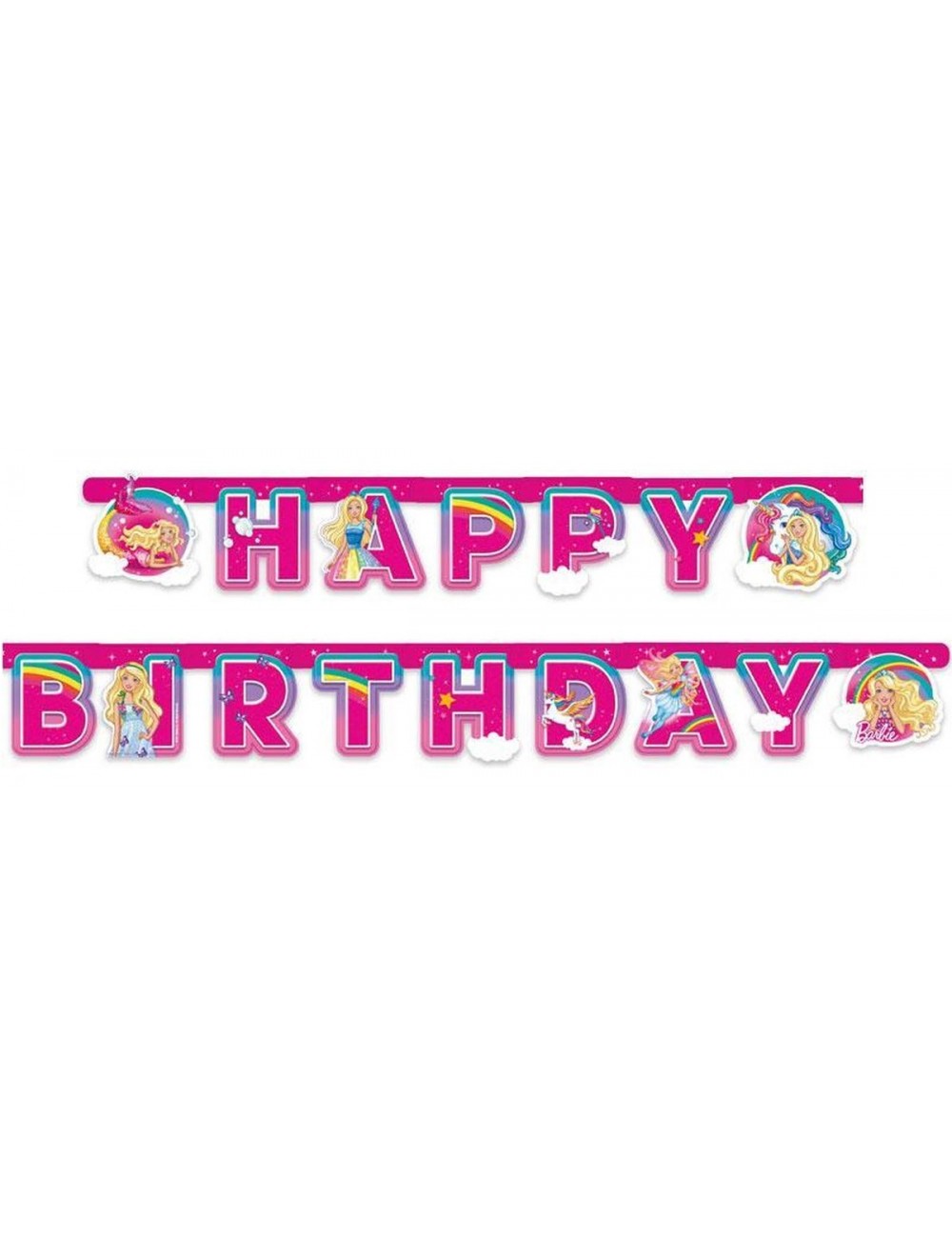 Ghirlanda Party Barbie Happy Birthday, lungime 200 cm, din carton, dimensiune litere aprox. 15 cm.