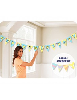 Ghirlanda Bluey Happy Birthday, lungime 450 cm, din carton, dimensiuni fanioane aprox. 16 x 19 cm.