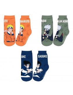 Set 3 perechi sosete, Naruto Shippuden, pentru copii, marime 27-30, multicolore, din material de calitate: 54% bumbac, 44% poliester, 2% elastan.