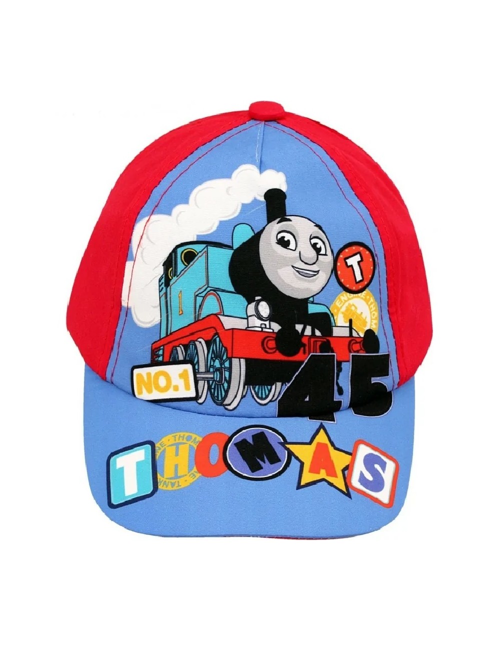 Sapca Locomotiva Thomas, culoare rosie, material 60% bumbac, 40% poliester, masuri 48 si 50 cm, se regleaza cu banda de scai la spate.